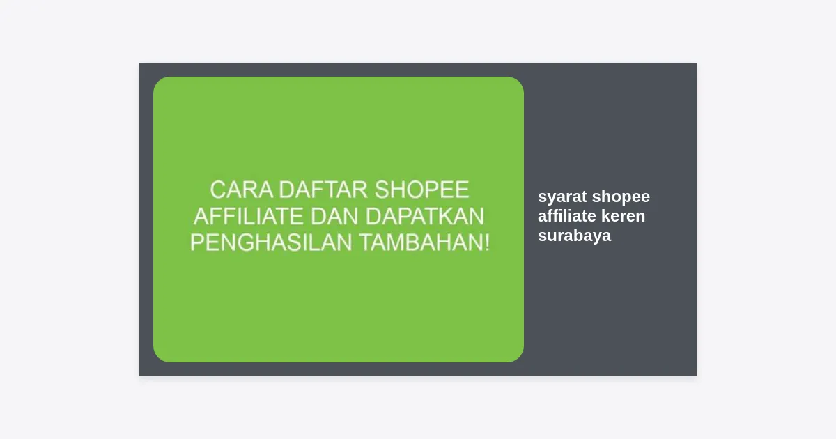 Syarat Shopee Affiliate Keren Surabaya: Panduan Lengkap dan Cara Daftar Agar Cepat Cuan